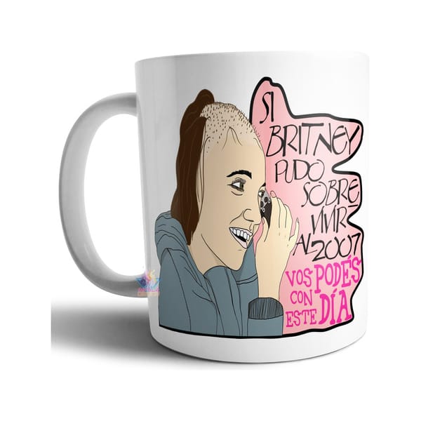 Taza Cerámica Britney Spears Rapada Mal Día Frase Pelada